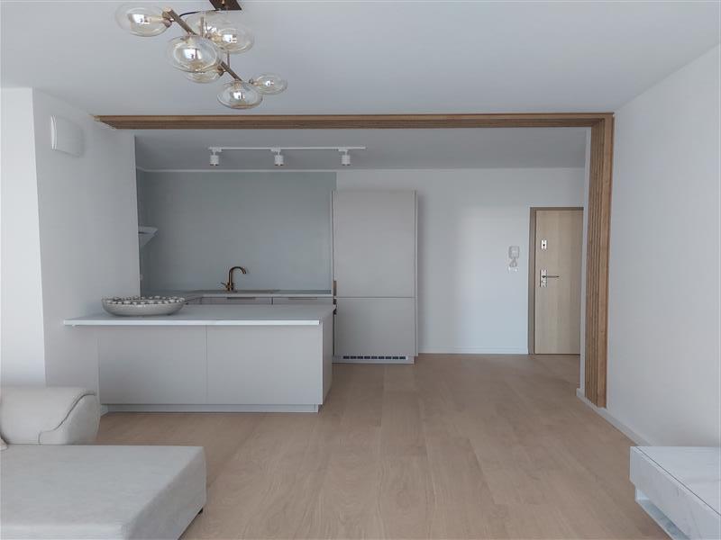 Salon wyposażony w wygodną, narożną, rozkładaną sofę. Aneks kuchenny z dużą wyspą. W wyposażeniu duża, pojemna lodówka z zamrażarką, płyta indukcyjna, piekarnik, pochłaniacz oraz zmywarka. Sypialnia z dużym łożem małżeńskim, pojemną szafą. Łazienka z kabiną prysznicową i pralką w wyposażeniu.