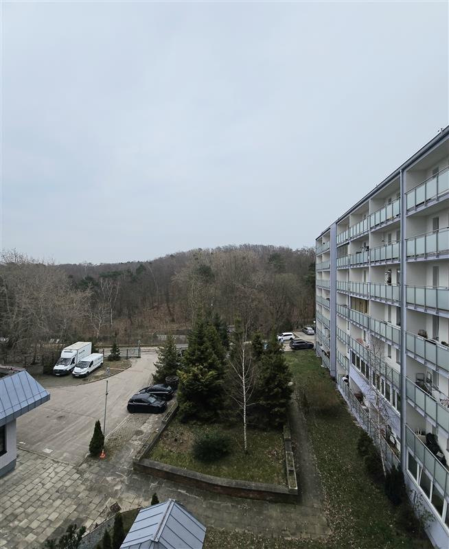 Mieszkanie urządzone i umeblowane w słonecznych, przyjemnych kolorach. Duży balkon z widokiem na las.