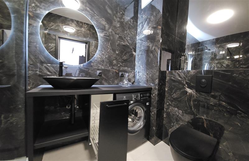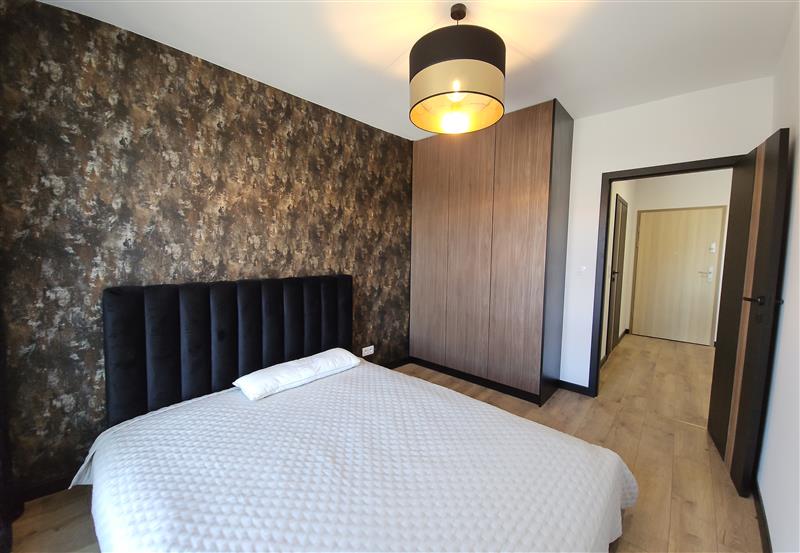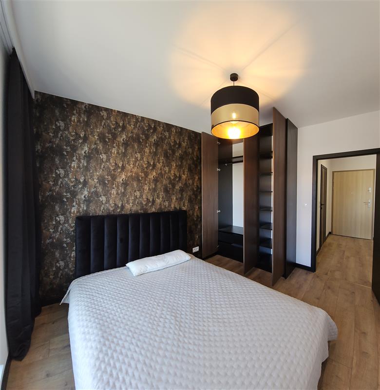 Apartament BLACK, wykończony w nowoczesnym, eleganckim stylu, pełnym czerni, połączonym z elementami złota.