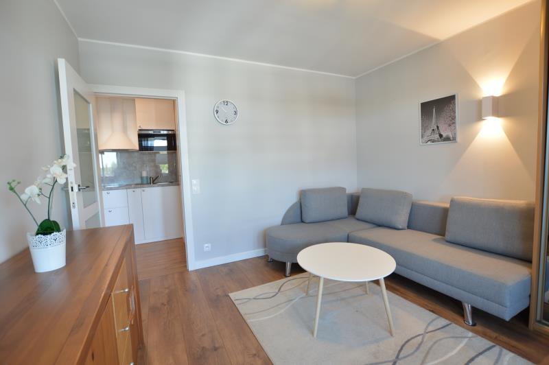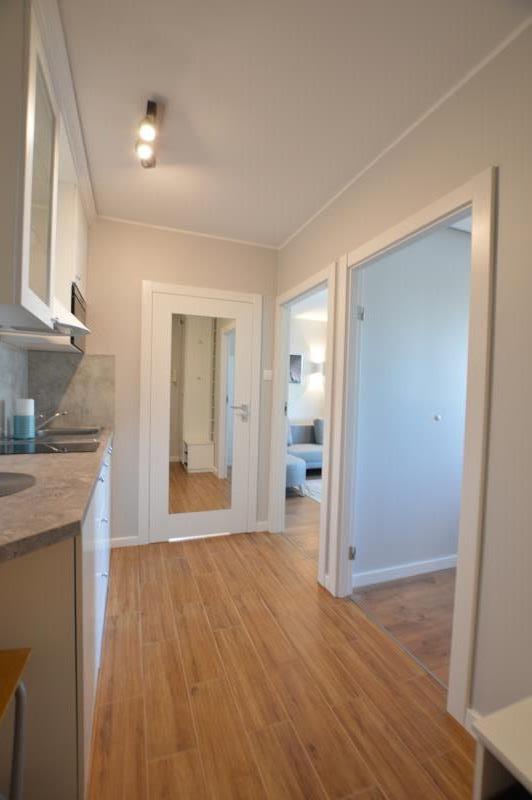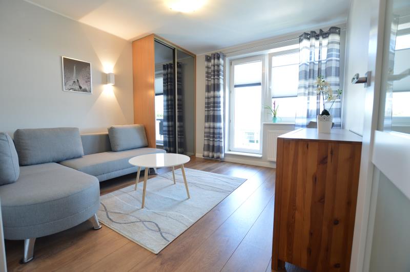 Dwupokojowe mieszkanie na zamkniętym osiedlu w zacisznej, zielonej dolinie potoku Swelina, który wyznacza granicę między Gdynią a Sopotem.